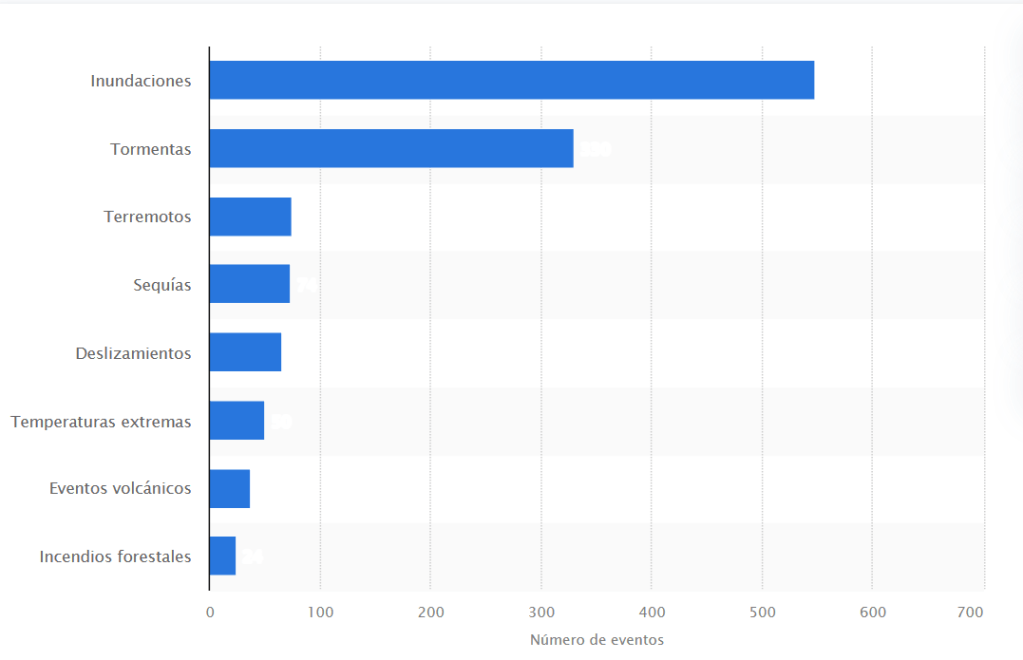 - Los últimos 20 años se han presentado entre 350 y 500 desastres al año. Según la ONU se prevé que las catástrofes alcancen los 560 por año, es decir 1,5 por día para el 2030.